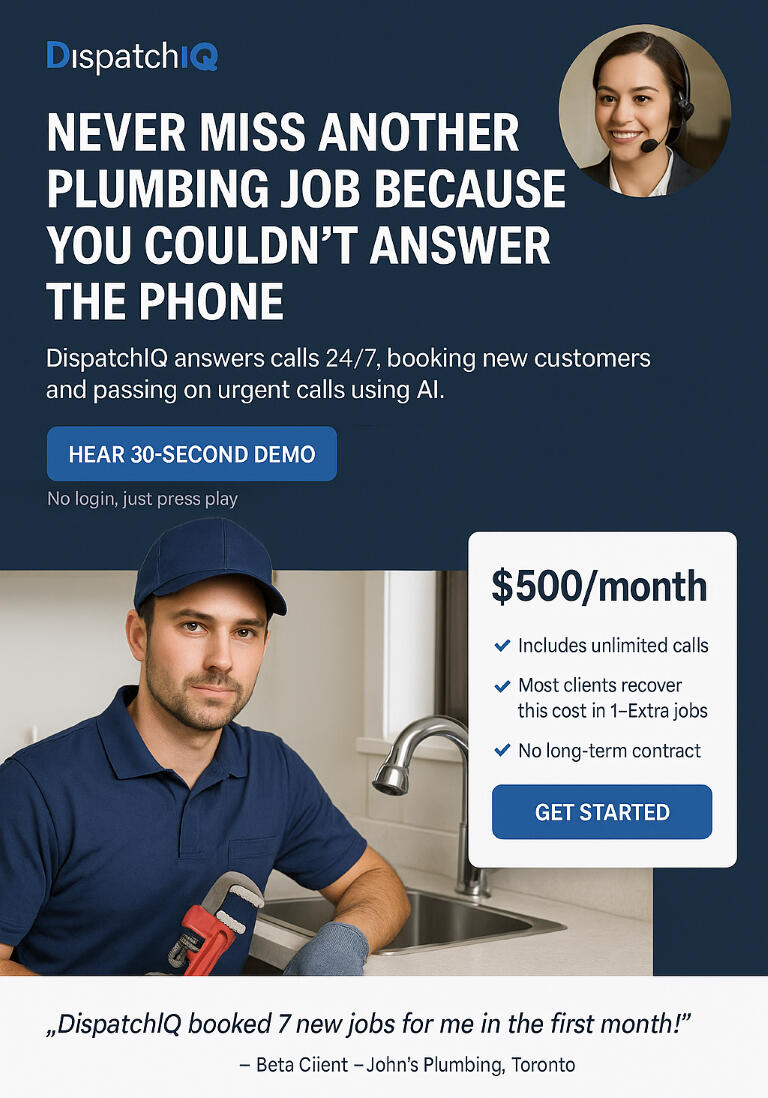 “Before DispatchIQ, we missed calls constantly while on jobs. Since installing it, we’ve had consistent bookings even after hours. We captured 4 emergency calls our competitors would’ve taken.”Mike Reynolds